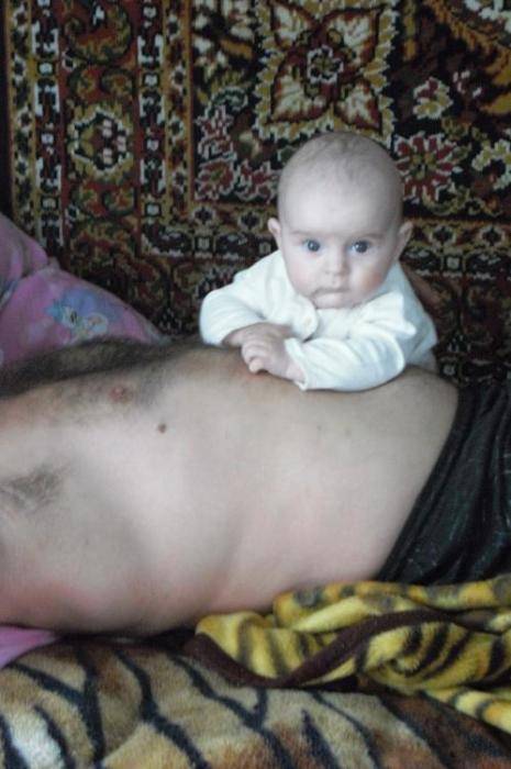 у деда на пузе